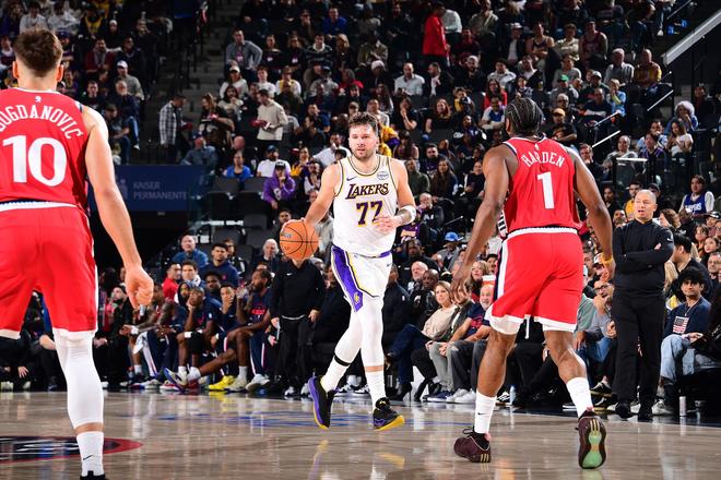 在東契奇傷退的情況下,詹姆斯打出賽季最佳一戰,在全場被快船隊壓著打的情況下,詹姆斯出戰37分鐘,28投15中,高效轟下全場最高36分,外加4籃板3助攻。